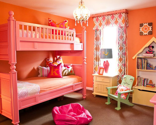 先來(lái)看看這款兒童雙層床設(shè)計(jì),粉色木質(zhì)床體,做工精細(xì),線(xiàn)條流暢,略帶些許歐美格調(diào)。家中有雙胞胎的家庭可在孩子長(zhǎng)到一定年齡的時(shí)候選擇這種兒童床,即能減小占地面積又能給兩個(gè)孩子各自的生活空間,小朋友爬上爬下的還可以鍛煉他們的靈活性。在主體色為桃粉色的裝修環(huán)境中,一把造型搞怪的綠色青蛙椅給整件房間增添不少新意和樂(lè)趣。