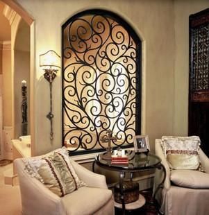 對于法式田園風格的搭配來說,鐵藝和布藝是很重要的元素。風水學上講,忌諱進門便能看的屋內全景,玄關的設計是很有必要的。選擇鐵藝玄關既可以起到阻隔視線的作用,又可以做到起到裝飾房間的作用。而布藝呢,可營造小清新的田園氣氛。在選擇時,客廳內的窗簾和沙發(fā)顏色、花色及質感要能相呼應,與此同時,沙發(fā)的布藝與墻面的色彩也要能相輔相成,這樣營造的處的風格和氣氛才能相互和諧。