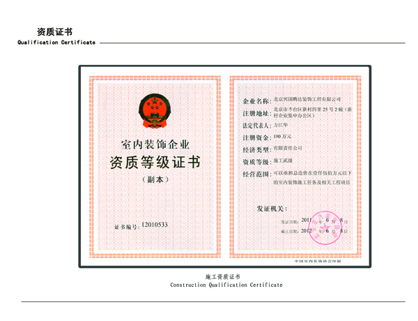 室內(nèi)裝修資質(zhì)等級(jí)證書